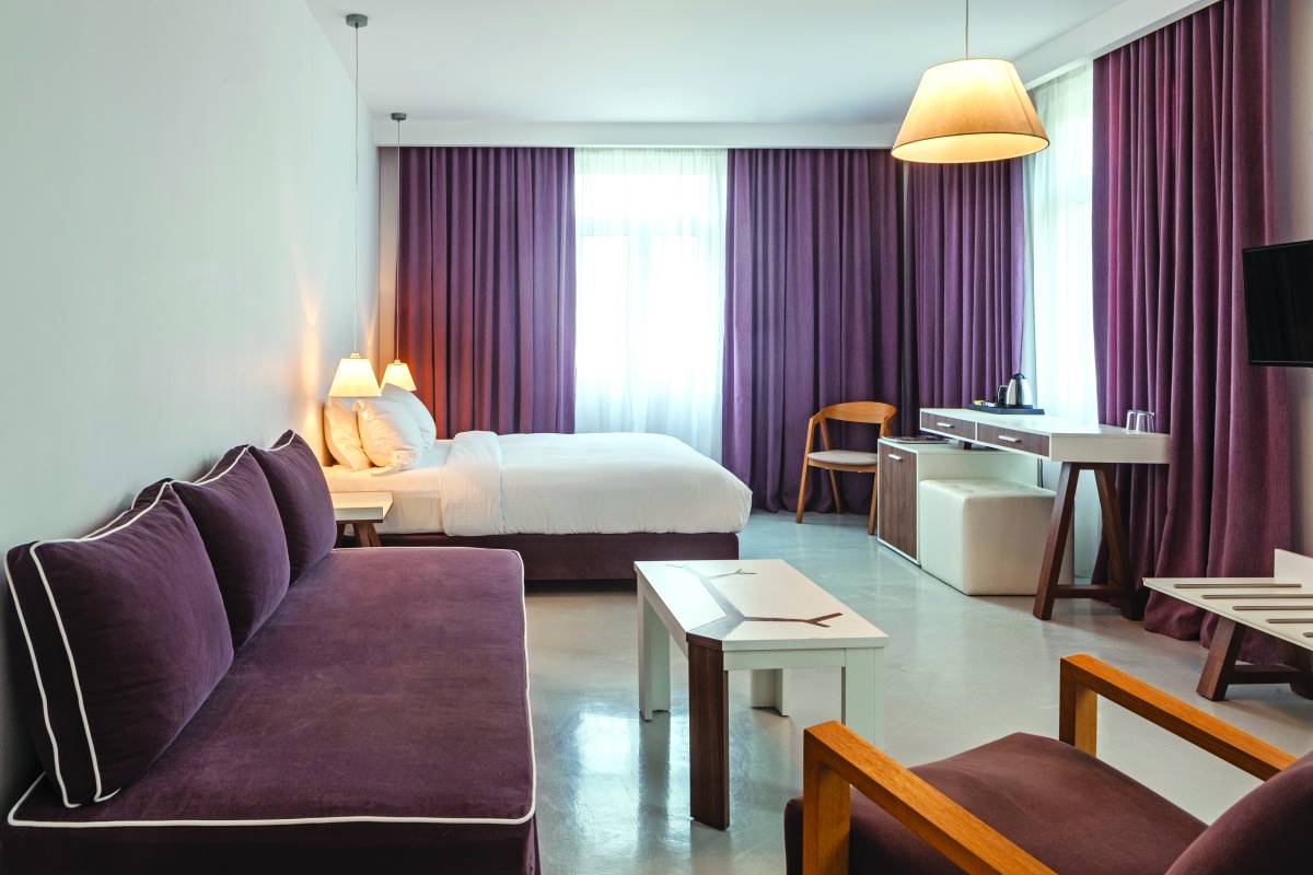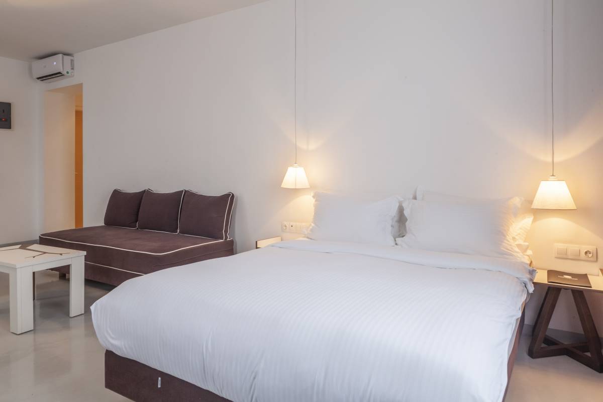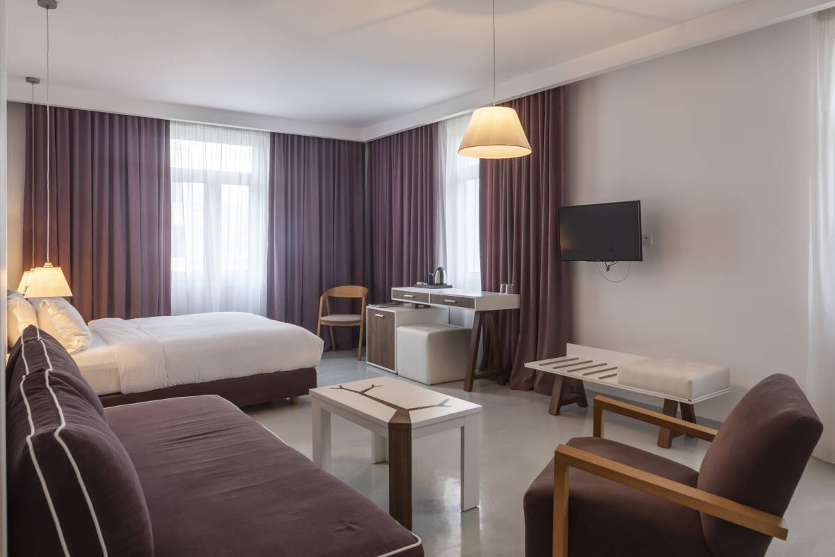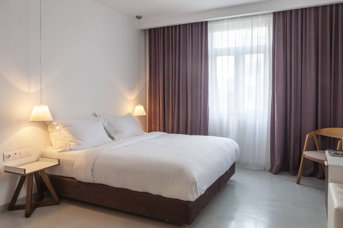Σε λιτές γραµµές, τα 23 deluxe δωµάτια και οι κοµψές σουίτες του είναι ευρύχωρα (27-40 τµ.), ψηλοτάβανα και φωτεινά, την ώρα που διακρίνονται για το µοντέρνο σχεδιασµό και τις πολυτελείς ανέσεις.